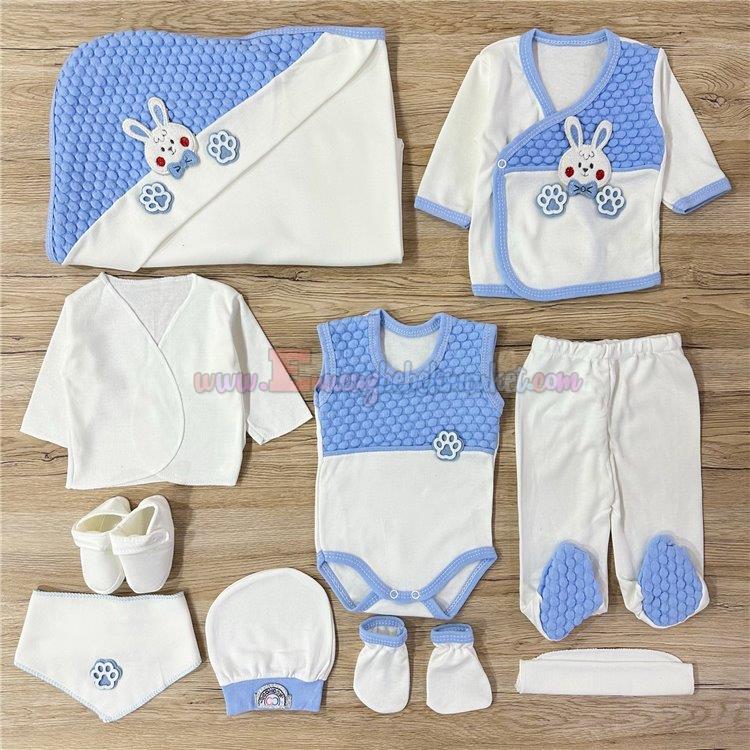 Concon 0-3 Ay 10 Parça Bebek Zıbın Seti Nohutlu Tavşan Mavi