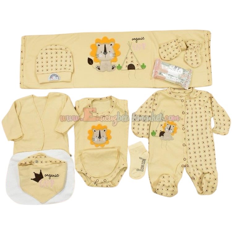 Concon 0-3 Ay 10 Parça Organic Zıbın Set Aslan Nakışlı Bej