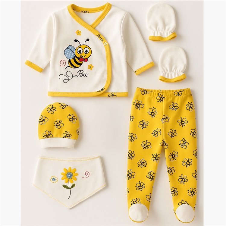 Concon 0-3 Ay 5'Li Zıbın Takım Arı Nakışlı Sarı