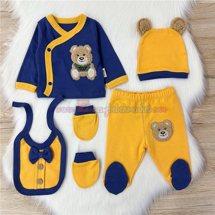 Coşay Baby 0-3 Ay 5'Li Zıbın Takım Ayıcık Nakışlı Lacivert