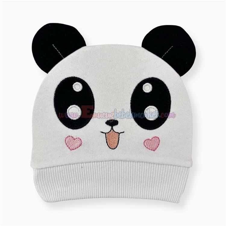 Cramerr 0-3-6 Ay Panda Figürlü Penye Bere Beyaz