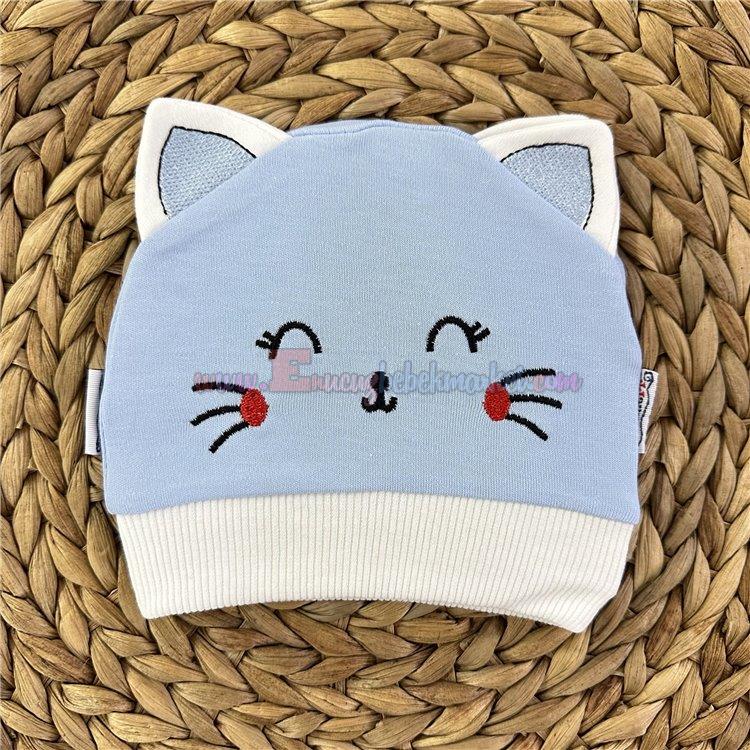 Cramerr 0-9 Ay Kedi Figürlü Penye Bere Mavi