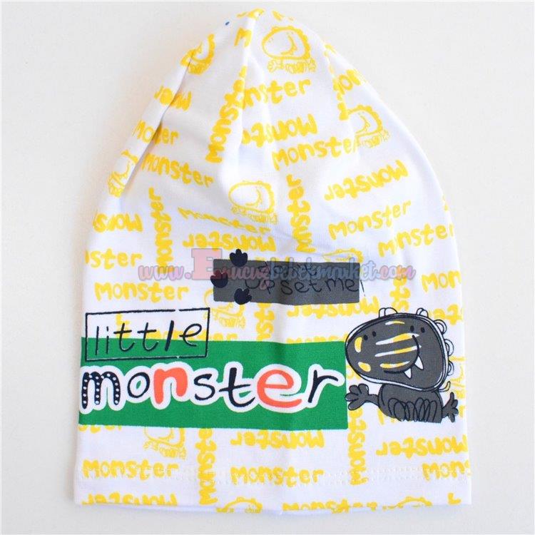 Cramerr 3-9 Ay Monster Baskılı Penye Bere Beyaz Sarı