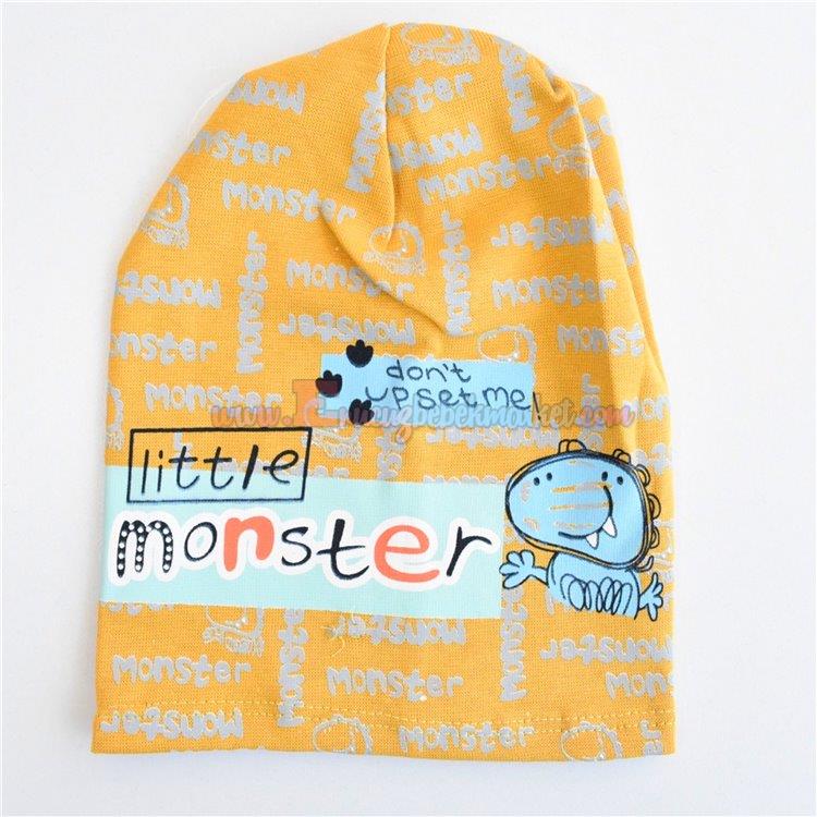 Cramerr 3-9 Ay Monster Baskılı Penye Bere Hardal