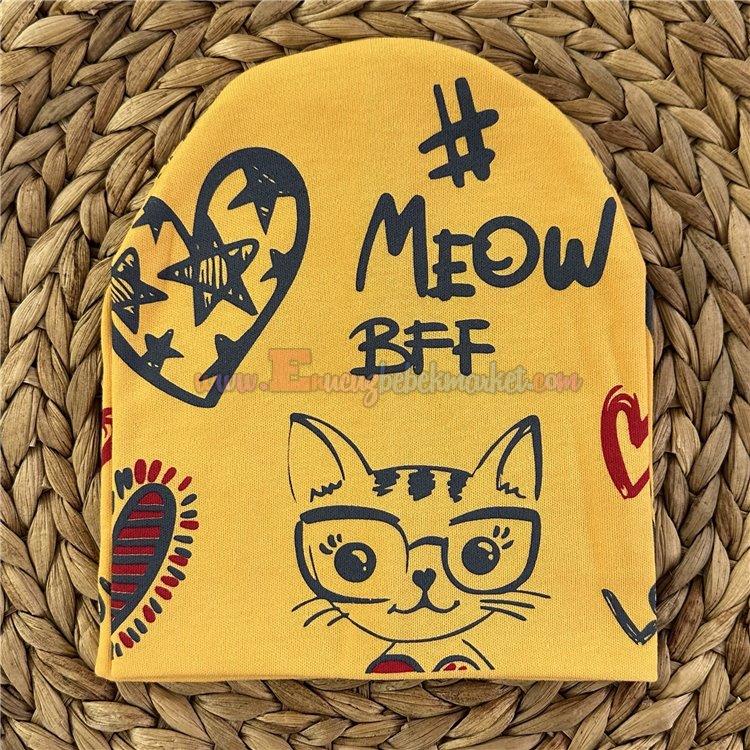 Cramerr 6-12 Ay Meow Baskılı Penye Bere Sarı