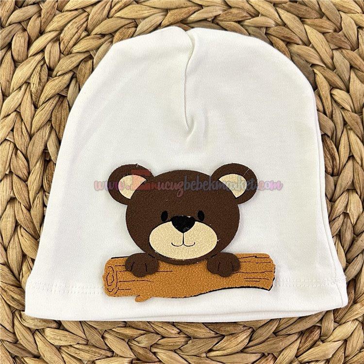 Defne 0-9 Ay Ayıcık Figürlü Penye Bere Krem