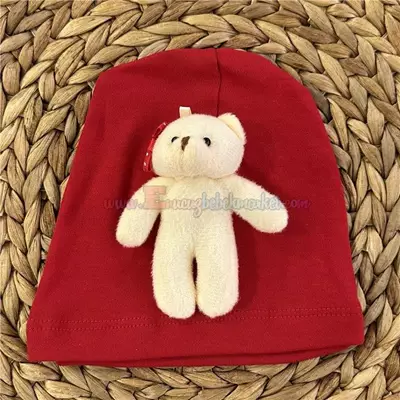 Defne 0-9 Ay Ayıcıklı Penye Bere Kırmızı