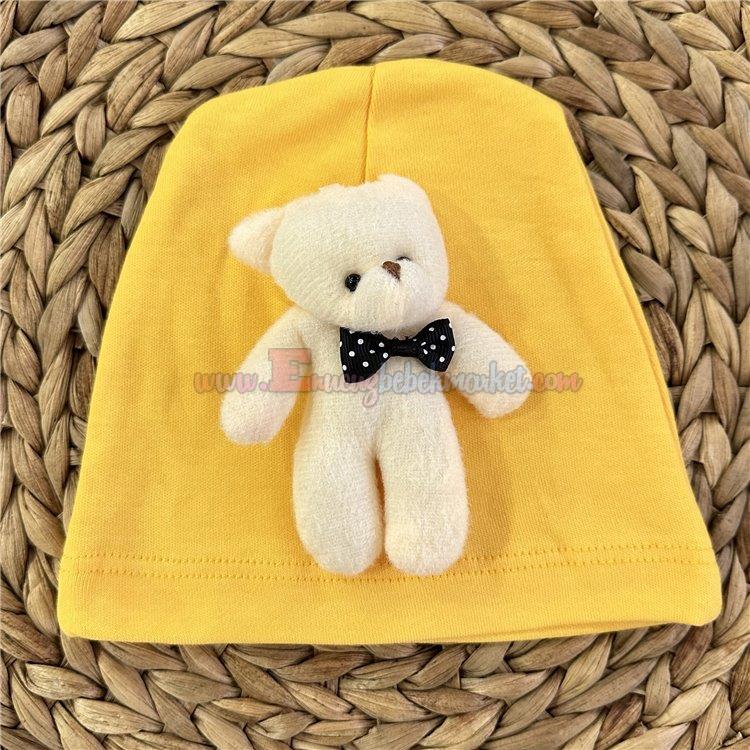 Defne 0-9 Ay Ayıcıklı Penye Bere Sarı