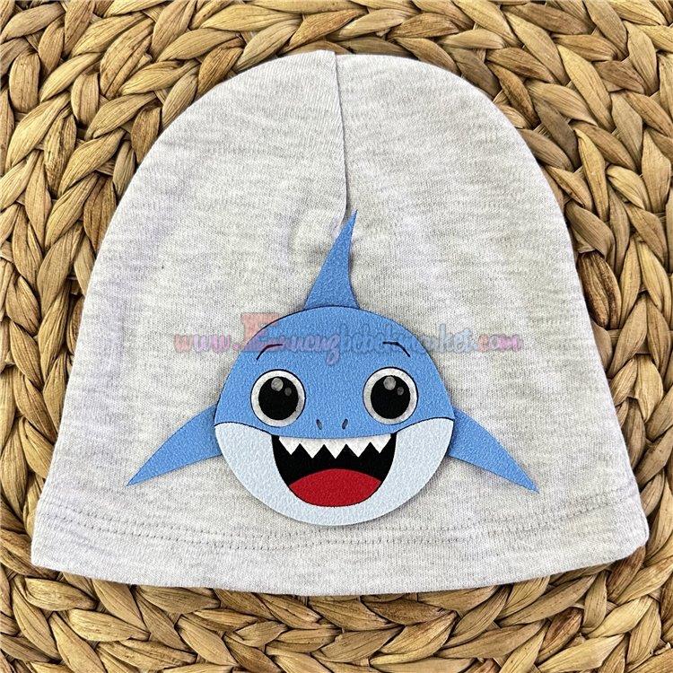 Defne 0-9 Ay Balık Figürlü Penye Bere Gri