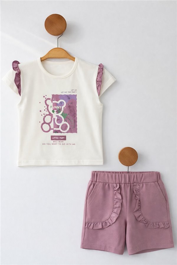 Dodo 2-5 Yaş Yazlık Kız Çocuk Takım Ayıcık Baskılı Gül Kurusu