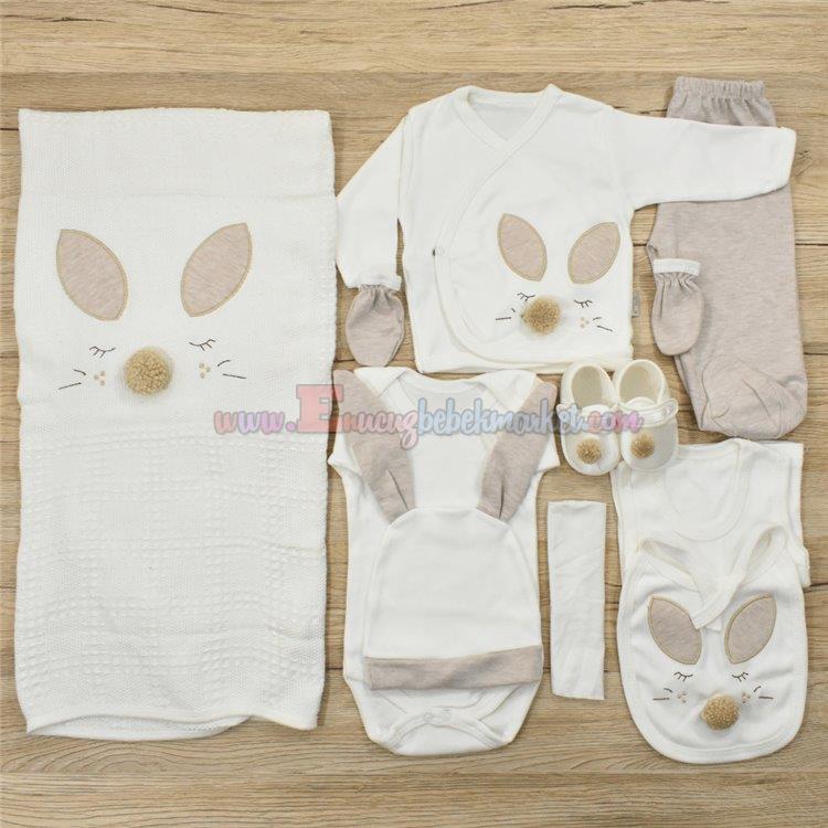 Donino 0-3 Ay 10 Parça Bebek Zıbın Seti Ponponlu Kulaklı Bej