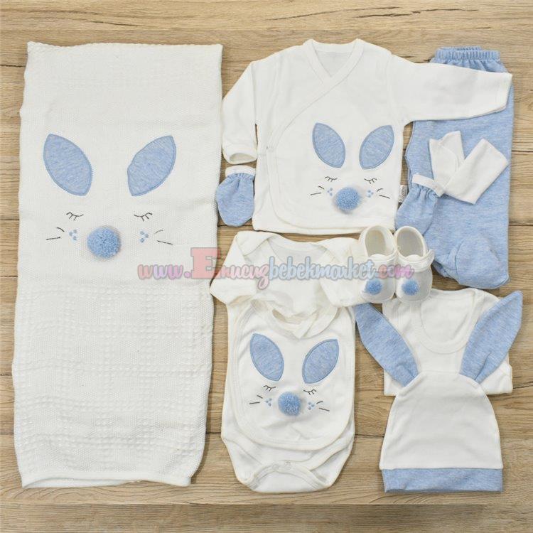 Donino 0-3 Ay 10 Parça Bebek Zıbın Seti Ponponlu Kulaklı Mavi