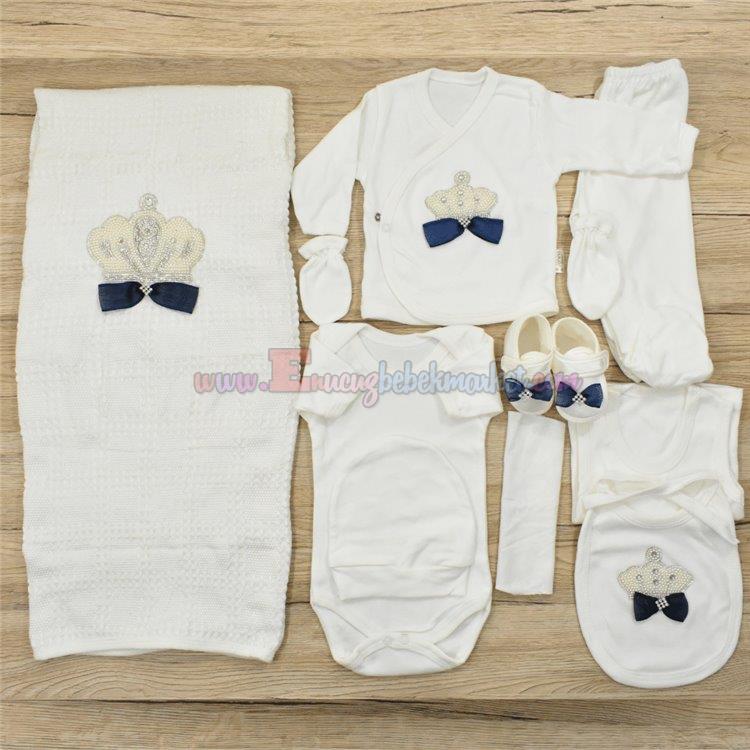 Donino 0-3 Ay 10 Parça Bebek Zıbın Seti Taşlı Lacivert