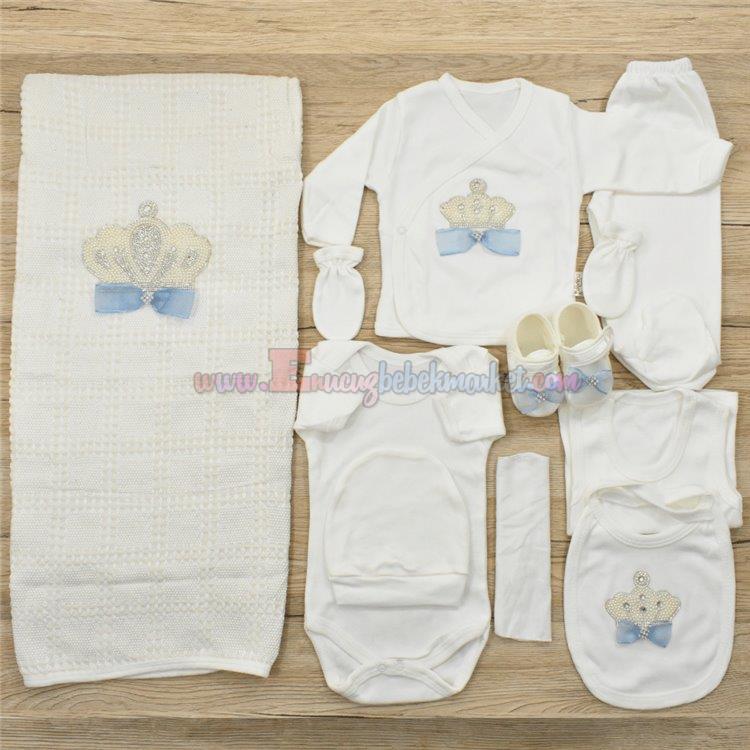 Donino 0-3 Ay 10 Parça Bebek Zıbın Seti Taşlı Mavi
