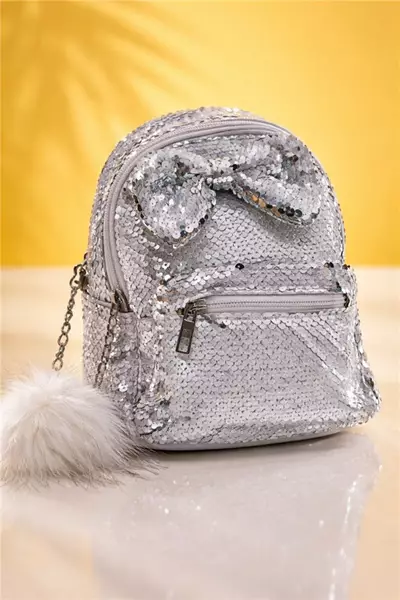 Ebm Accessories Pullu Kız Çocuk Sırt Çantası Gümüş Beyaz