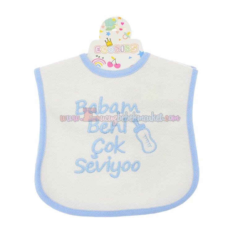 Ecobibs 3-12 Ay Babam Beni Çok Seviyor Bebek Önlük Mavi
