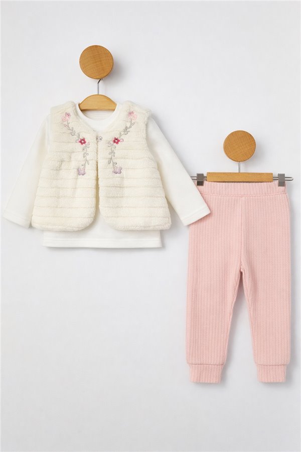 Elci 3-6-9-12-18 Ay 3 Parça Kız Bebek Takım Pudra