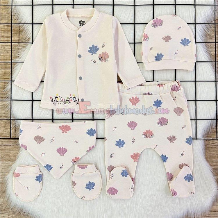 Esya Baby 0-3 Ay İstiridye Baskılı 5 Parça Zıbın Takım