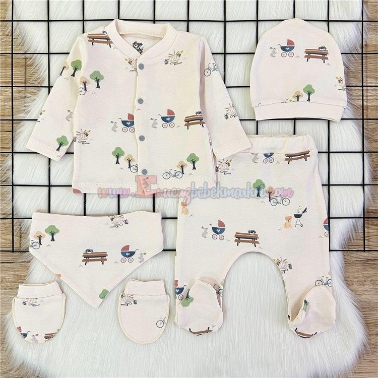 Esya Baby 0-3 Ay Piknik Park Baskılı 5 Parça Zıbın Takım