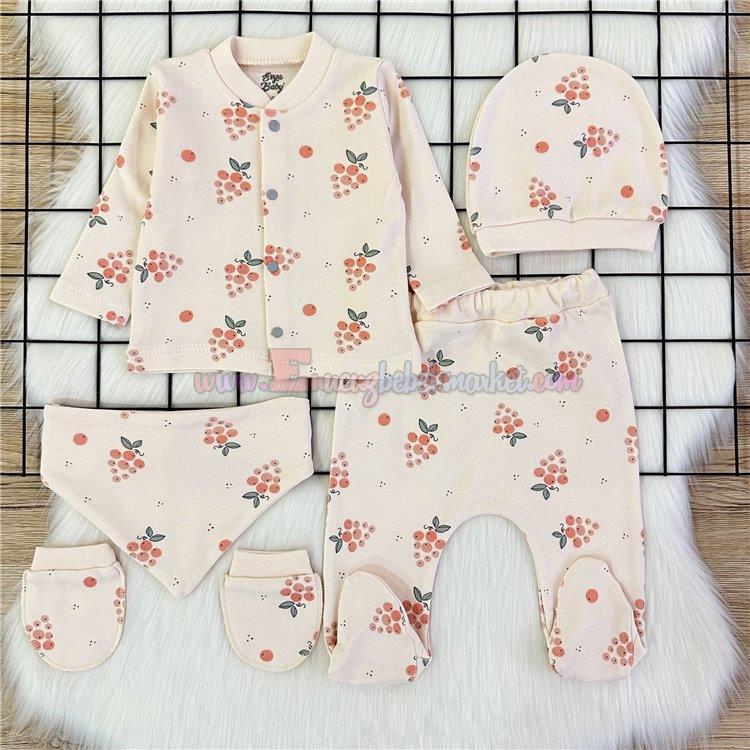 Esya Baby 0-3 Ay Üzüm Baskılı 5 Parça Zıbın Takım