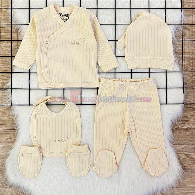 Fındık Baby 0-3 Ay 5'Li Kalp Detaylı Bebek Zıbın Takım Bej