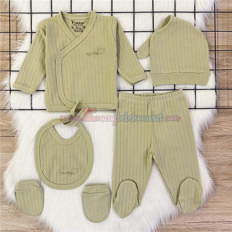 Fındık Baby 0-3 Ay 5'Li Kalp Detaylı Bebek Zıbın Takım Haki