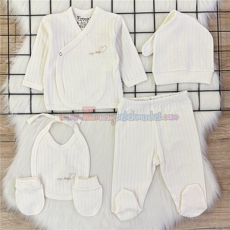 Fındık Baby 0-3 Ay 5'Li Kalp Detaylı Bebek Zıbın Takım Krem
