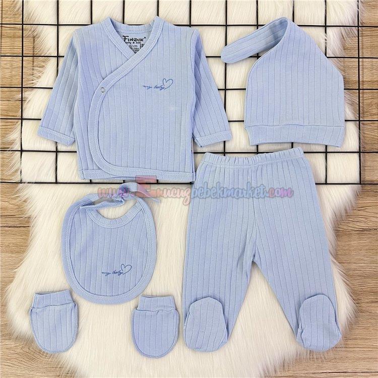 Fındık Baby 0-3 Ay 5'Li Kalp Detaylı Bebek Zıbın Takım Mavi