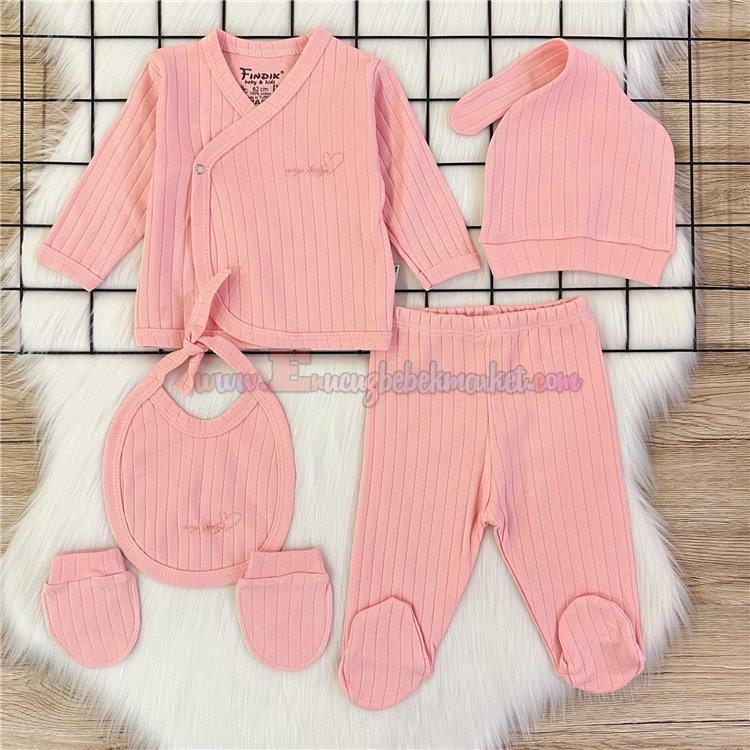 Fındık Baby 0-3 Ay 5'Li Kalp Detaylı Bebek Zıbın Takım Pudra