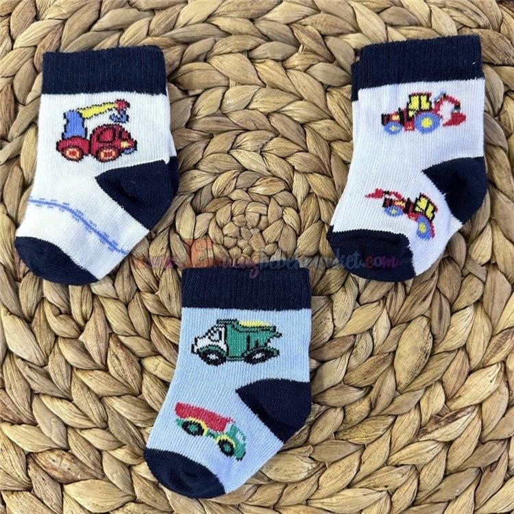 Fındık Bebe 0-3 Ay 3'Lü Bebek Çorap Kamyon Desenli