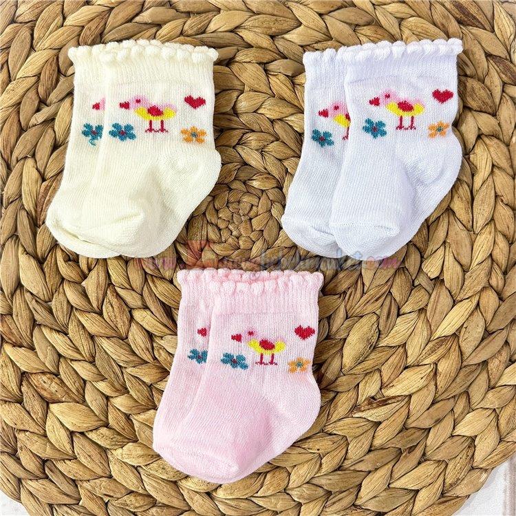 Fındık Bebe 0-3 Ay 3'Lü Bebek Çorap Kuş Pembe