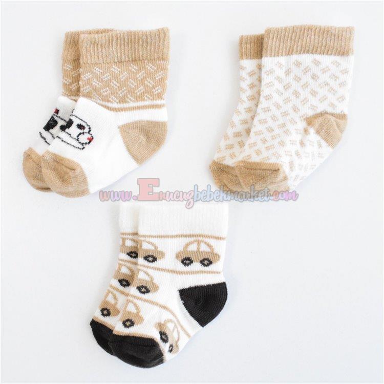 Fındık Bebe 0-3 Ay Bebek Çorap Arabalı Kahverengi