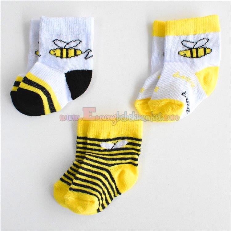 Fındık Bebe 0-3 Ay Bebek Çorap Arı Desenli Sarı