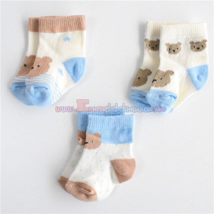 Fındık Bebe 0-3 Ay Bebek Çorap Ayıcıklı Mavi Krem