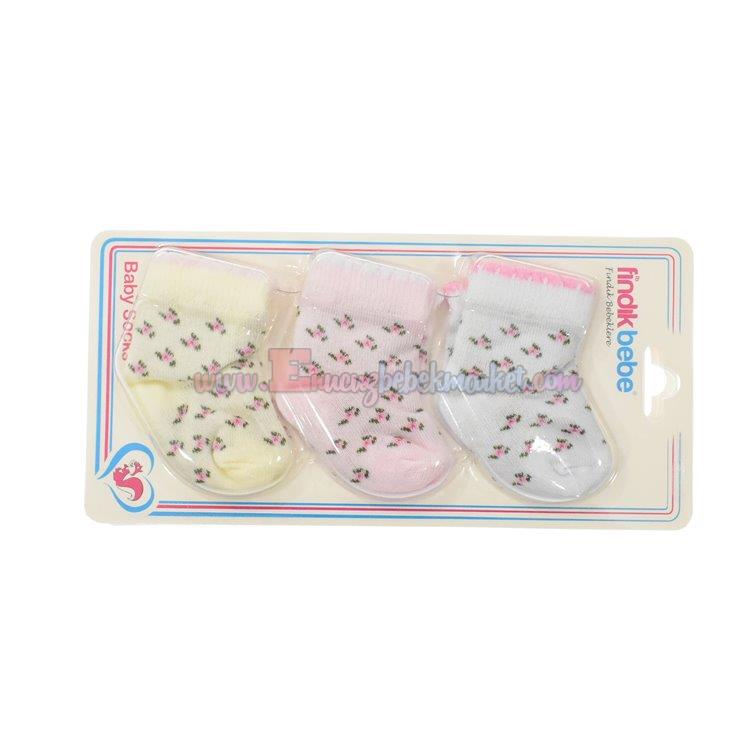 Fındık Bebe 0-3 Ay Bebek Çorap Çiçek Desen Pembe
