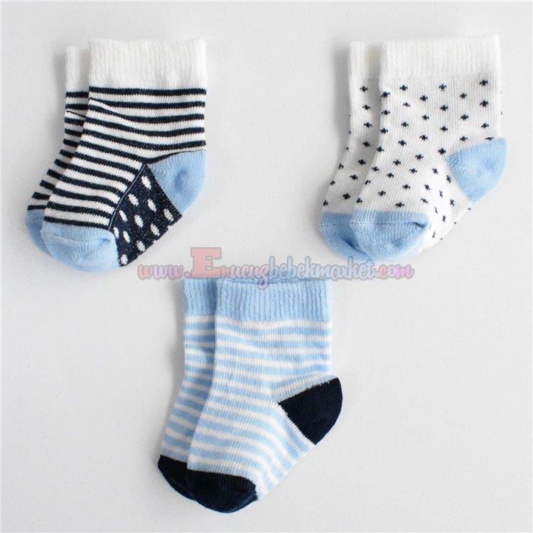 Fındık Bebe 0-3 Ay Bebek Çorap Çizgili Puanlı Mavi