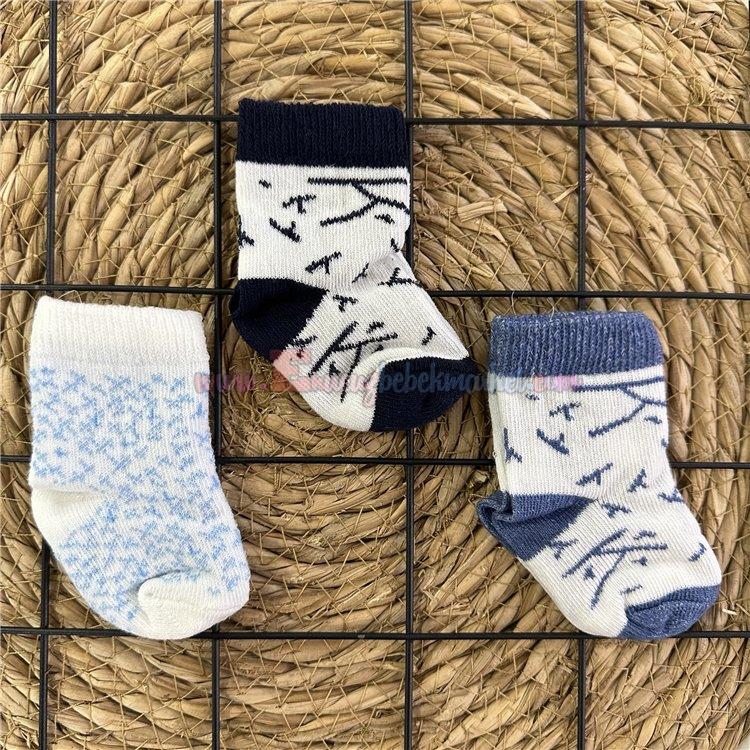 Fındık Bebe 0-3 Ay Bebek Çorap Karışık Çizgili Mavi