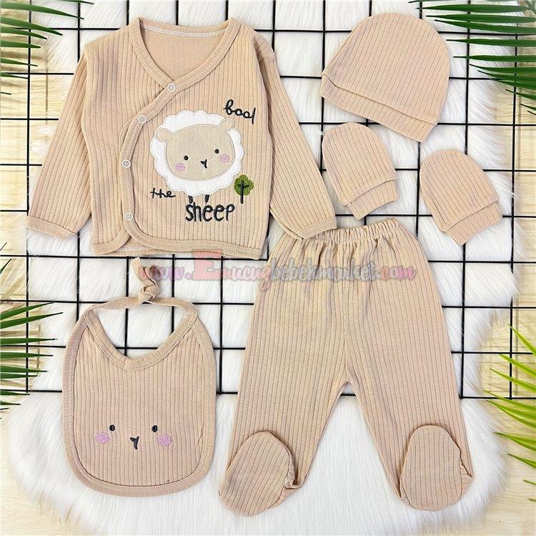 Gonca Bebe 0-3 Ay Kuzu Nakışlı 5 Parça Zıbın Takım Bej
