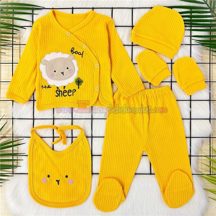 Gonca Bebe 0-3 Ay Kuzu Nakışlı 5 Parça Zıbın Takım Sarı