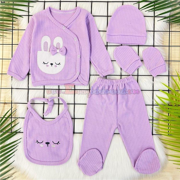 Gonca Bebe 0-3 Ay Tavşan Nakışlı 5 Parça Zıbın Takım Lila