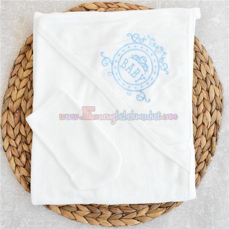 Gülünce 90X65 Cm Bebek Banyo Havlusu Baby Nakışlı Mavi