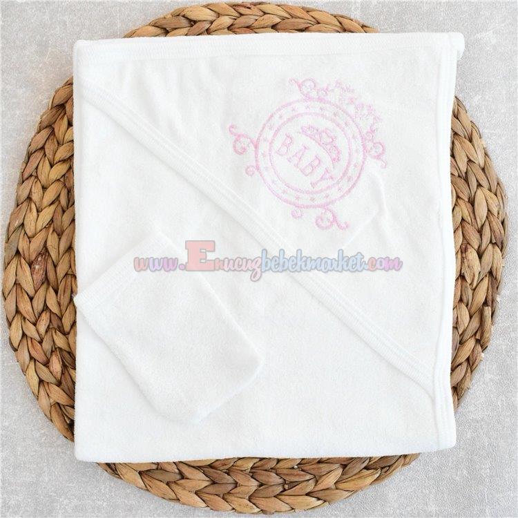Gülünce 90X65 Cm Bebek Banyo Havlusu Baby Nakışlı Pembe