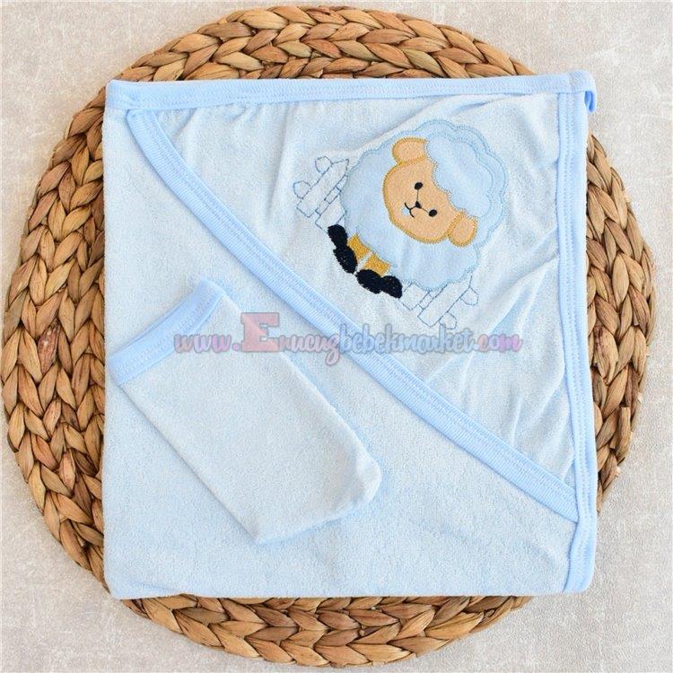 Gülünce 90X65 Cm Bebek Banyo Havlusu Kuzu Nakışlı Mavi