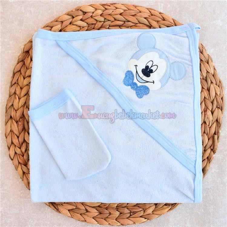 Gülünce 90X65 Cm Bebek Banyo Havlusu Miki Nakışlı Mavi