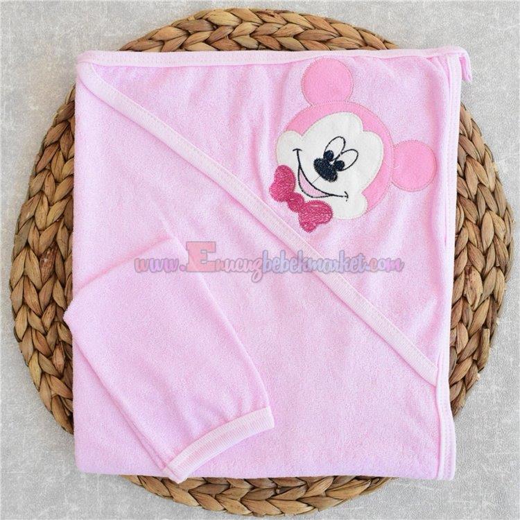 Gülünce 90X65 Cm Bebek Banyo Havlusu Miki Nakışlı Pembe