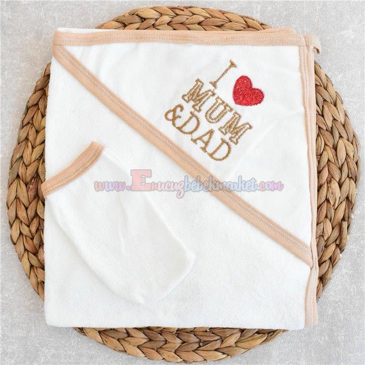 Gülünce 90X65 Cm Bebek Banyo Havlusu Mum Dad Nakışlı Kahve