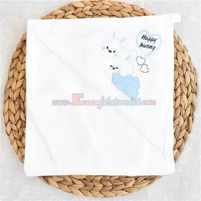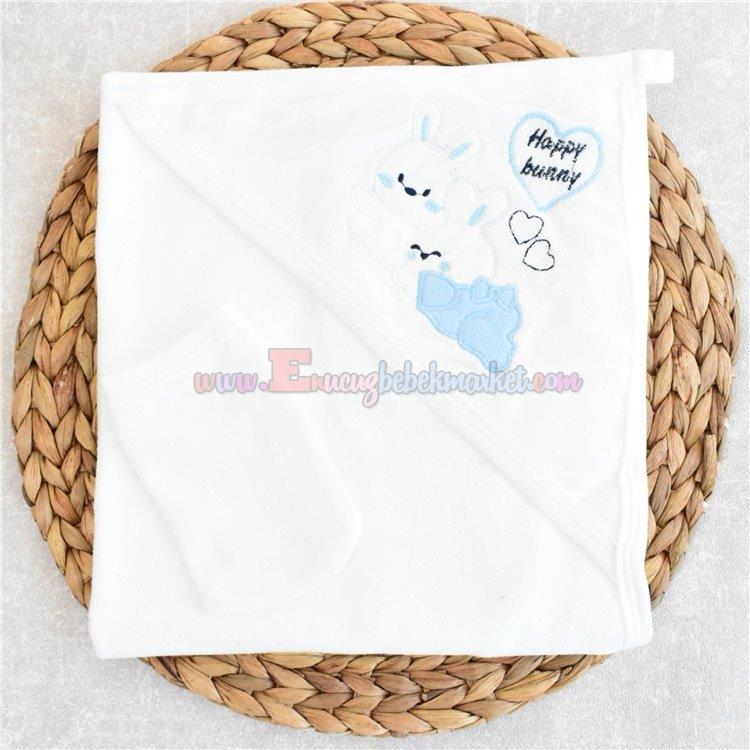 Gülünce 90X65 Cm Bebek Banyo Havlusu Tavşan Nakışlı Mavi Krem