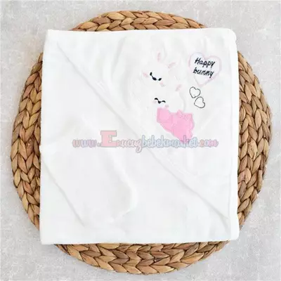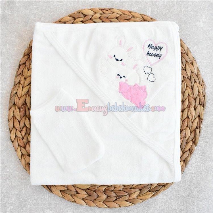 Gülünce 90X65 Cm Bebek Banyo Havlusu Tavşan Nakışlı Pembe Krem
