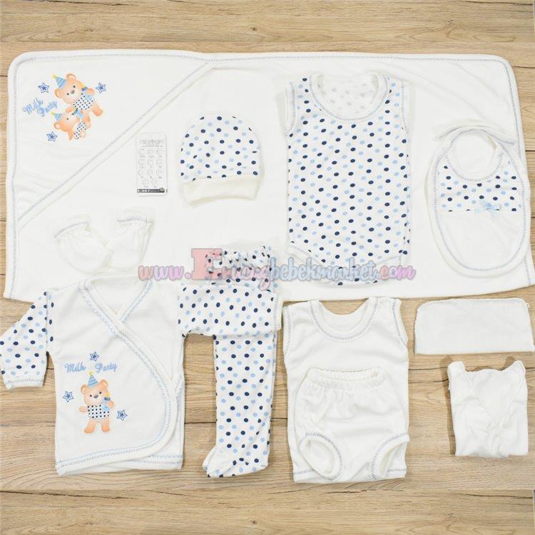 Hopipop 0-3 Ay 11 Parça Bebek Zıbın Seti Ayıcık Nakışlı Mavi
