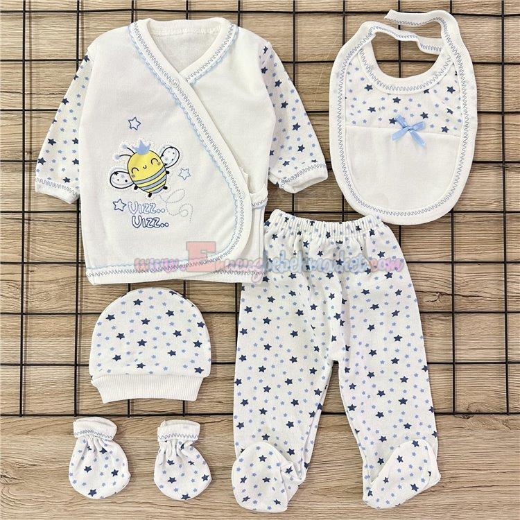 Hopipop 5 Parça Penye Zıbın Takım Arı Nakışlı Mavi